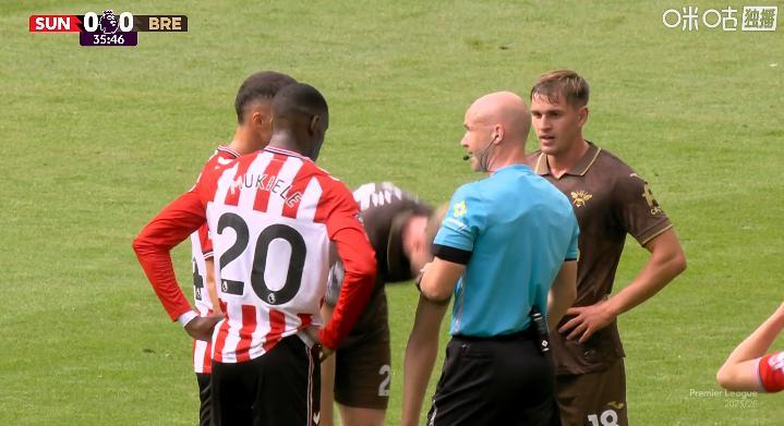 比赛第36分钟,桑德兰队长扎卡与布伦特福德中场亚尔莫柳克之间发生了一些争执,主裁判安东尼-泰勒介入调解了此次争端。目前双方0-0平。
