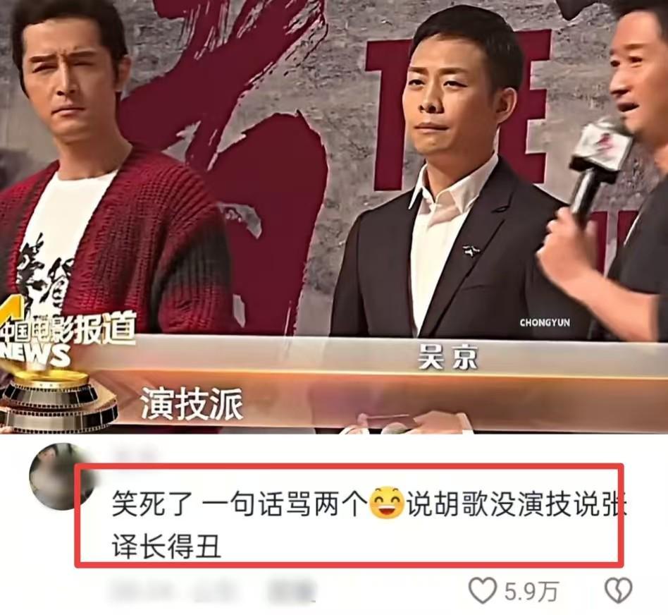 还有吴京跟胡歌、张译之间的那些事,更是让人哭笑不得,记得有次活动,吴京当着两人的面,说胡歌是“帅哥”,张译是“演技派”。