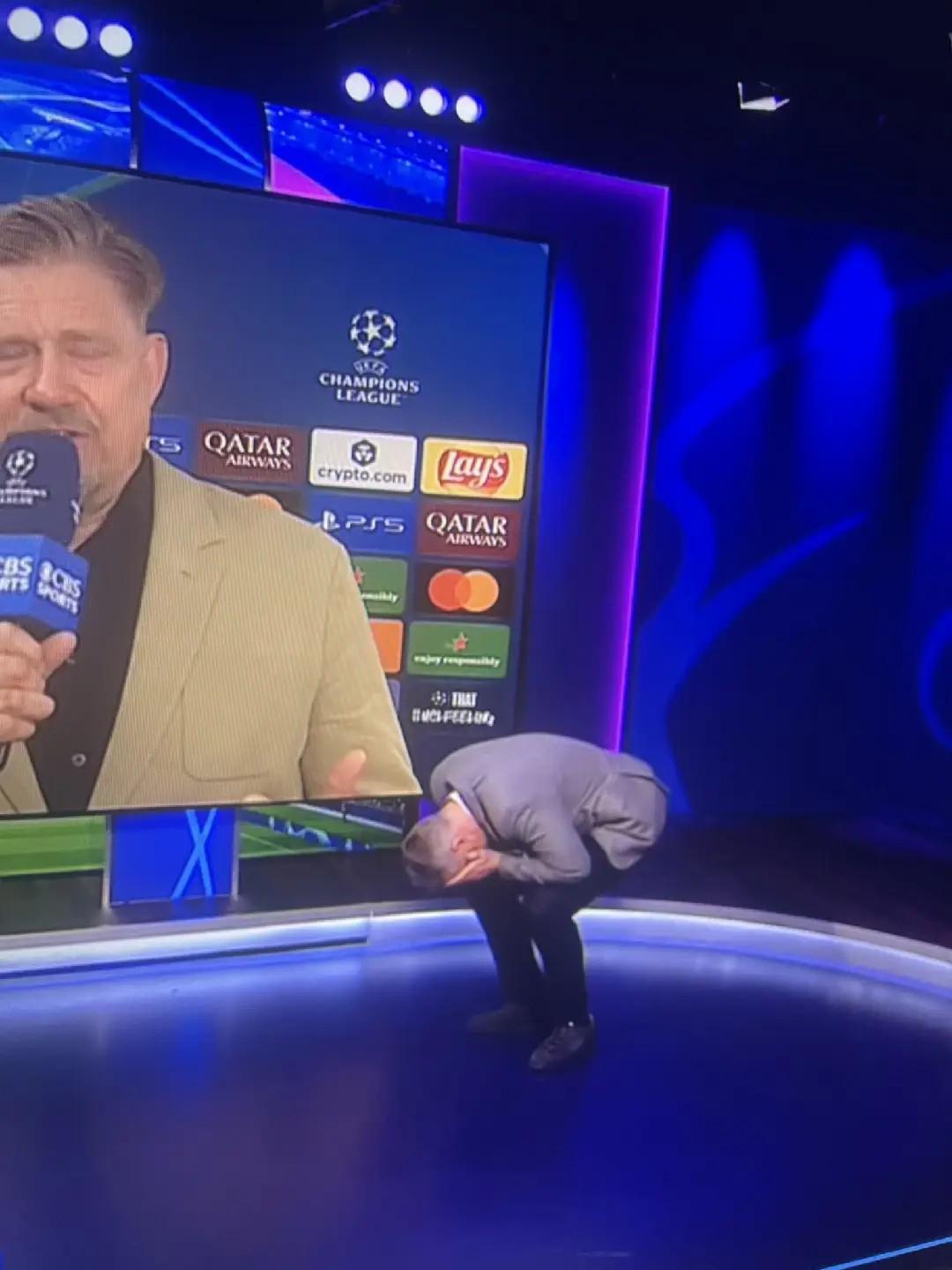 这样的话语通过直播信号传递到CBS的演播厅,直接让演播厅的评论嘉宾亨利和卡拉格大笑不止。卡拉格笑得蹲在了地上,亨利则直接躲到了屏幕后面。